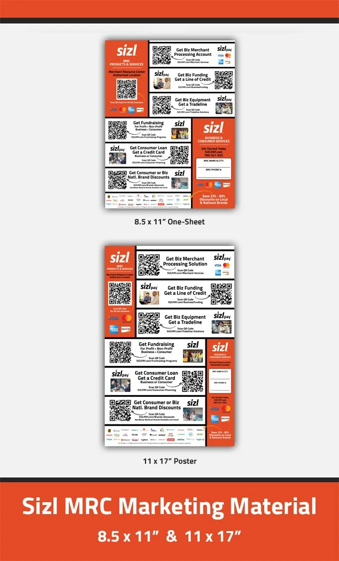 Sizl is a Network of Business & Consumer Service Providers and Merchant Resource Centers all throughout the United States; use the Sizl MRC² Program to make Additional Revenue. Your Location will become the Main Resource Center for Businesses & Customers in your community to access these services.